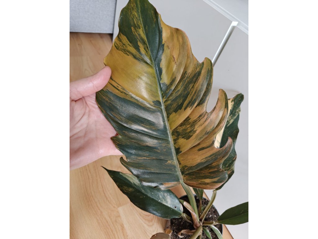 Philodendron Caramel Marble variegata patří mezi opravdové skvosty ve světě pokojových rostlin. Jeho velké listy zdobí úžasná paleta barev – od jemné smetanové, přes teplé karamelové tóny až po sytě zelenou. Každý list je jedinečným uměleckým dílem, kde se nikdy neopakuje stejný vzor.